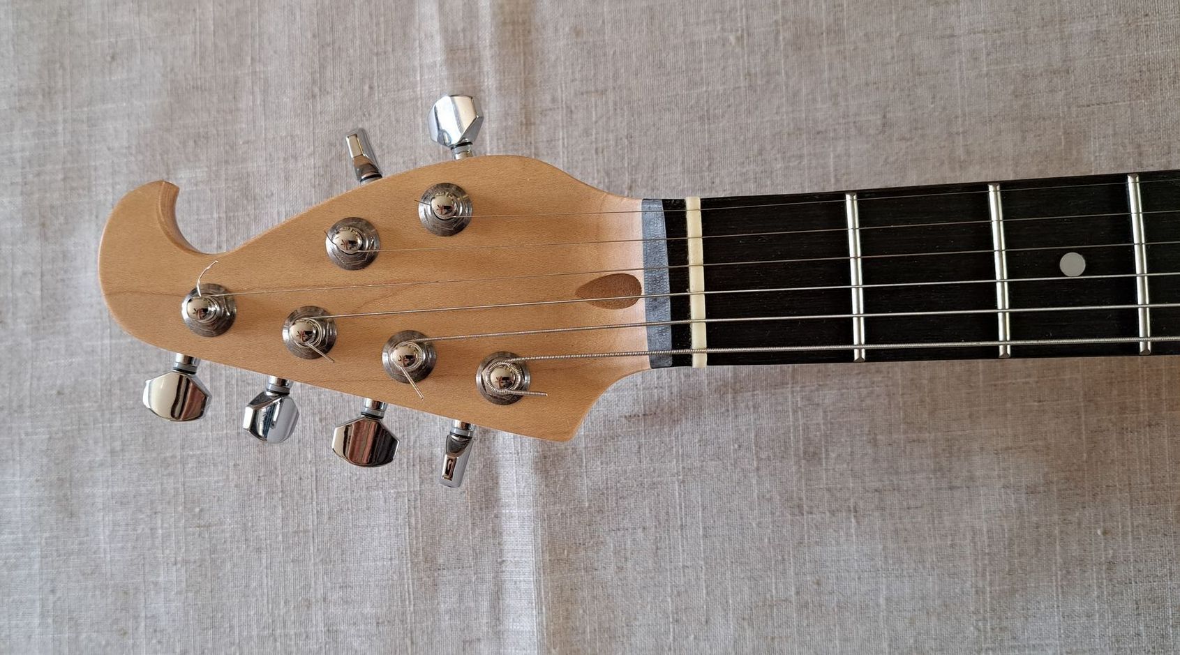 Unless requested otherwise, instruments are fitted with Ernie Ball Ultra Slinky strings. These can obviously be specified by the customer, or the instrument can be left unstrung for the customer to fit and tune themselves.