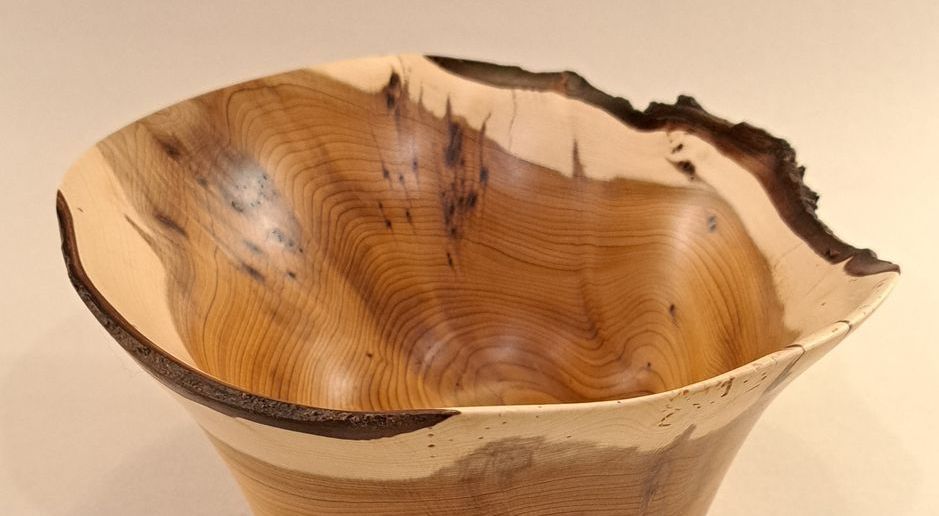 Part live edged and included yew bowl