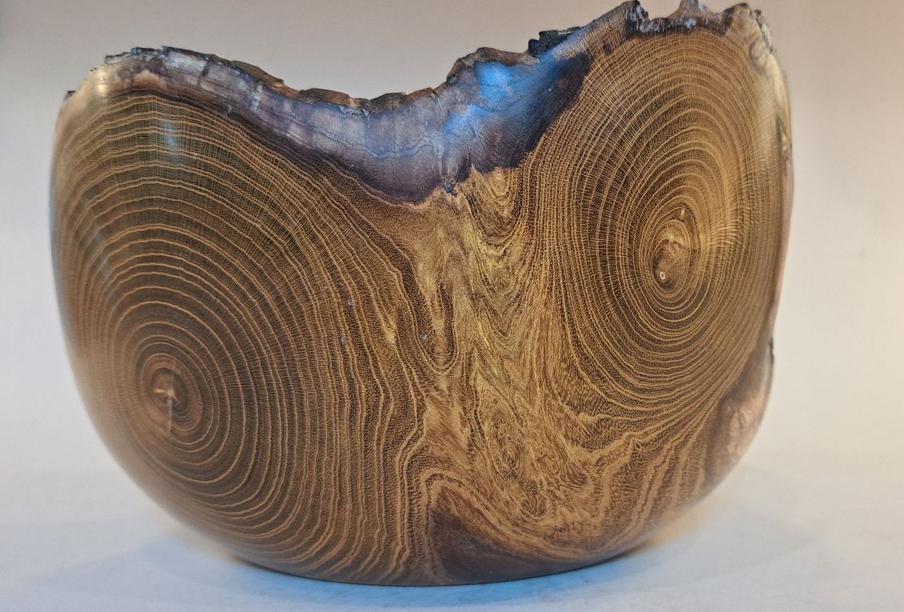 Large, richly grained English Walnut bowl, with a flat(ish) edge from where the tree was dismantled after storm damage in a Cheltenham back garden.