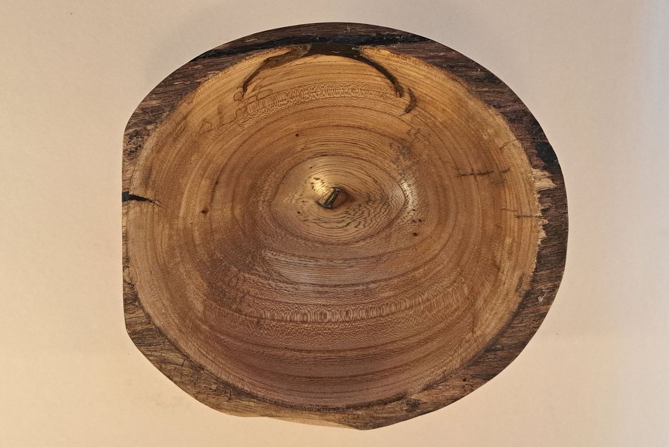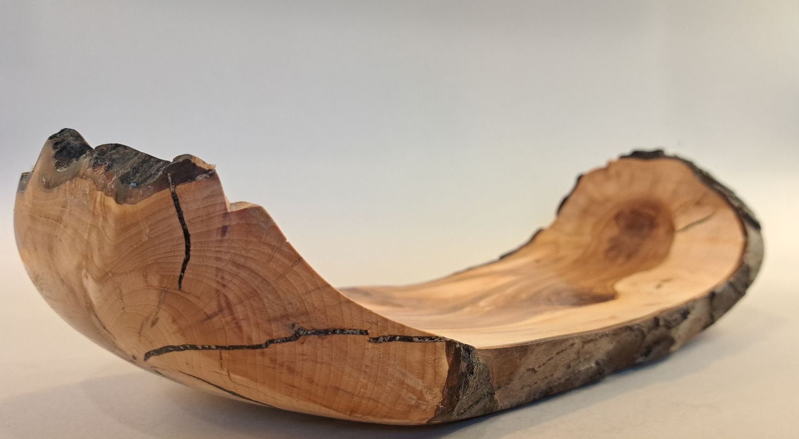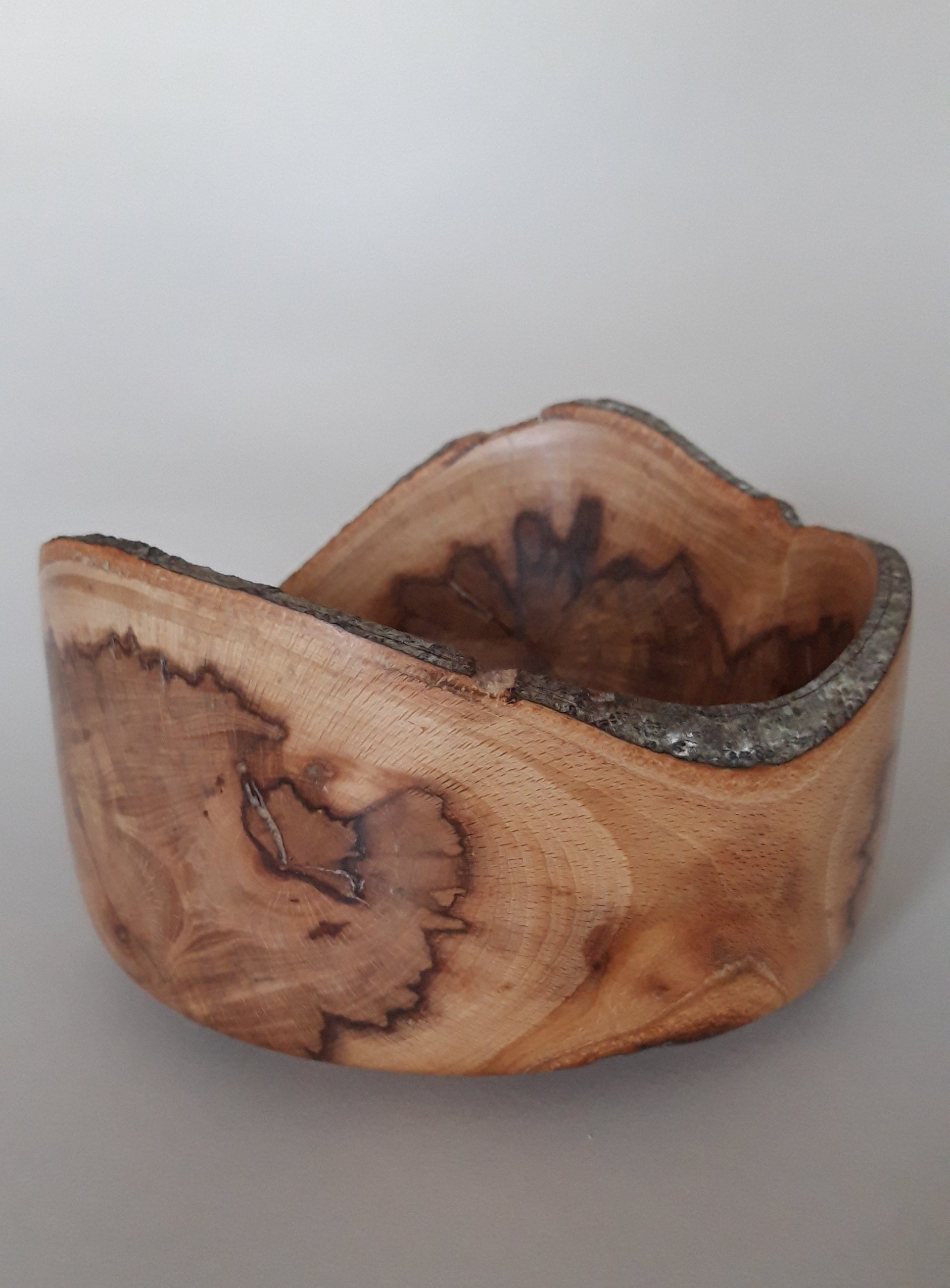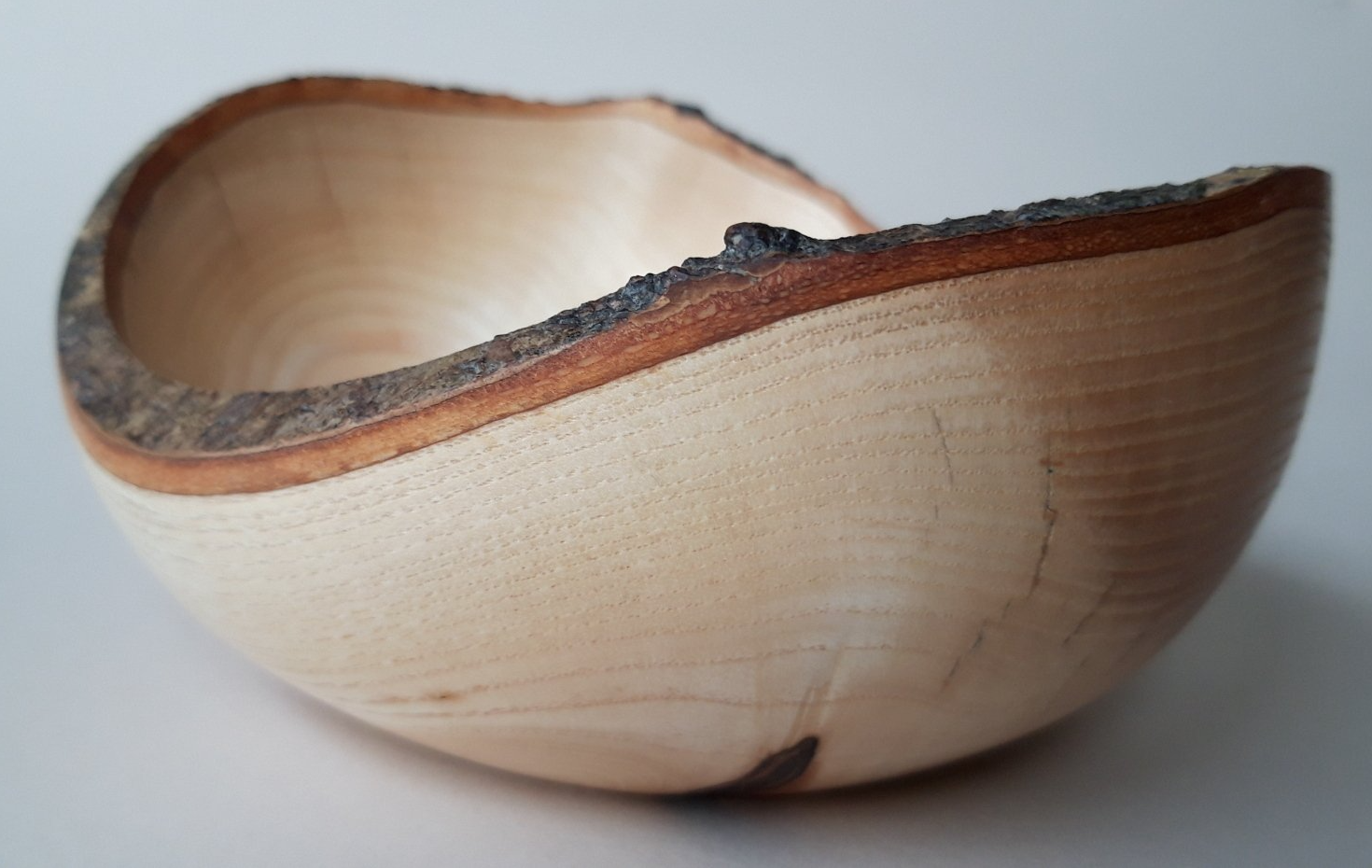 Live edged ash bowl with bark inclusion features,