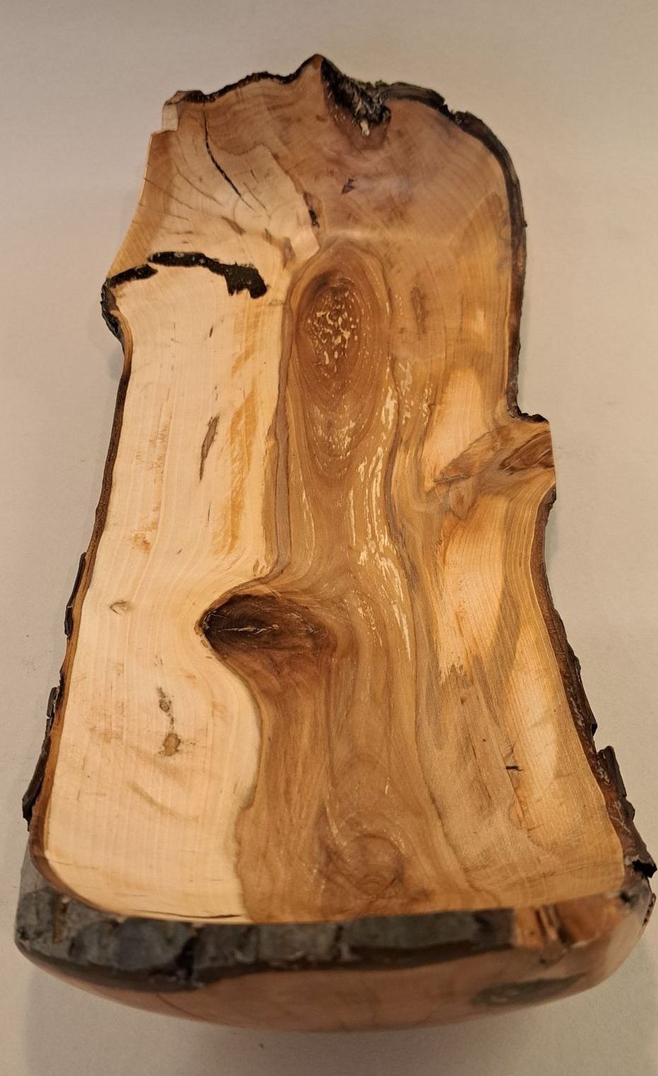 Live edged long applewood platter.