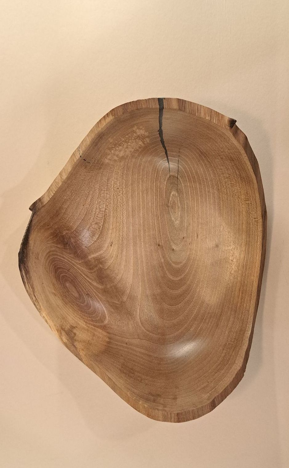 It's got a flat end from where it was cut by Somerset District Council as part of tree management and a crack which developed during turning, filled with woodturners epoxy to maintain integrity.