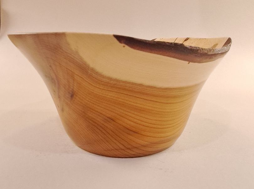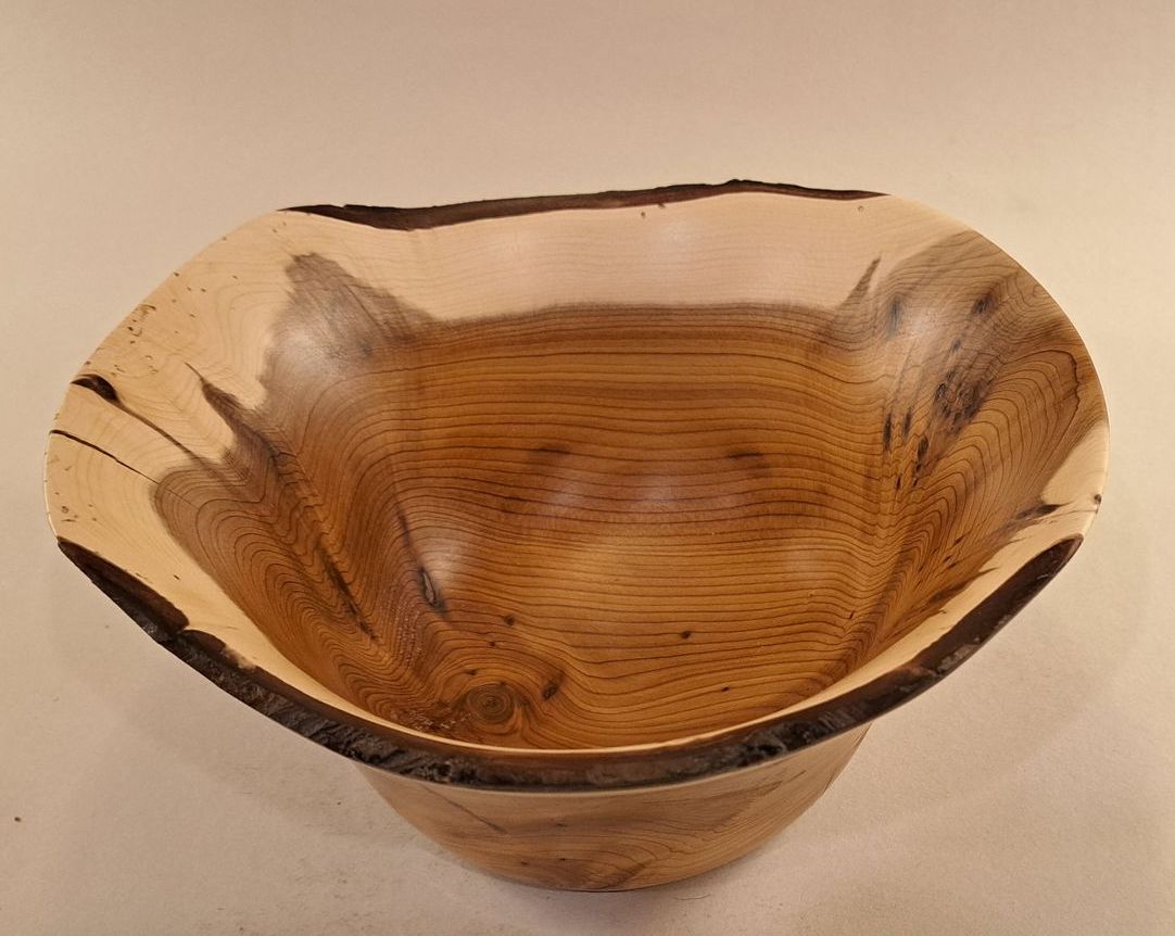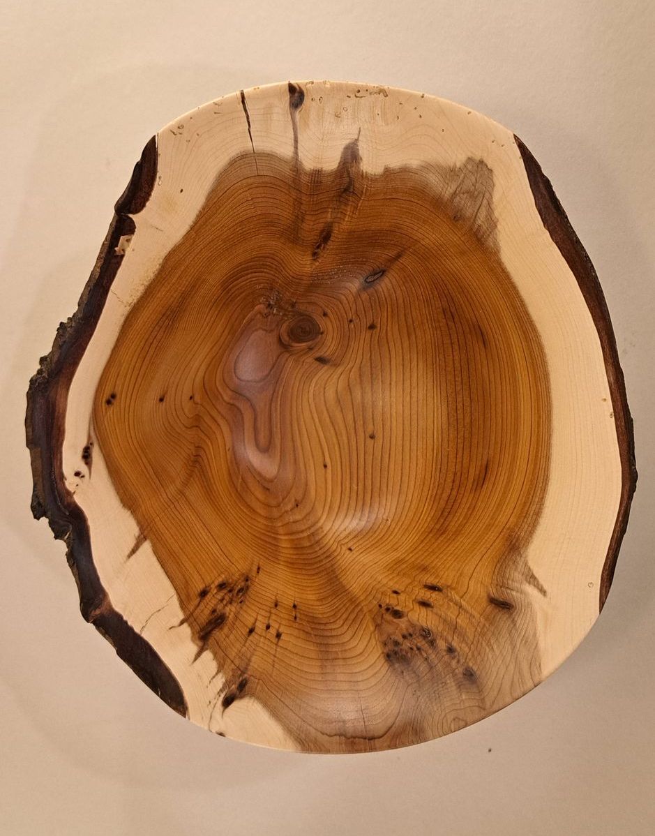 Part live edged and included yew bowl